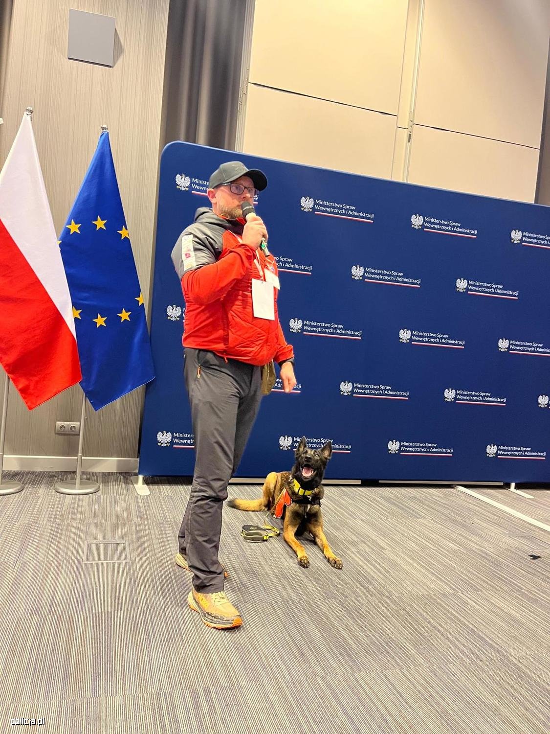 - Potencjał grup poszukiwawczo-ratowniczych działających w ramach KSRG, łączących kompetencje ludzi, zwierząt i nowoczesnych technologii omówił przedstawiciel Państwowej Straży Pożarnej mł. kpt. Marek Przybysz ze Specjalistycznej Grupy Poszukiwawczo-Ratowniczej „Warszawa 9”.
